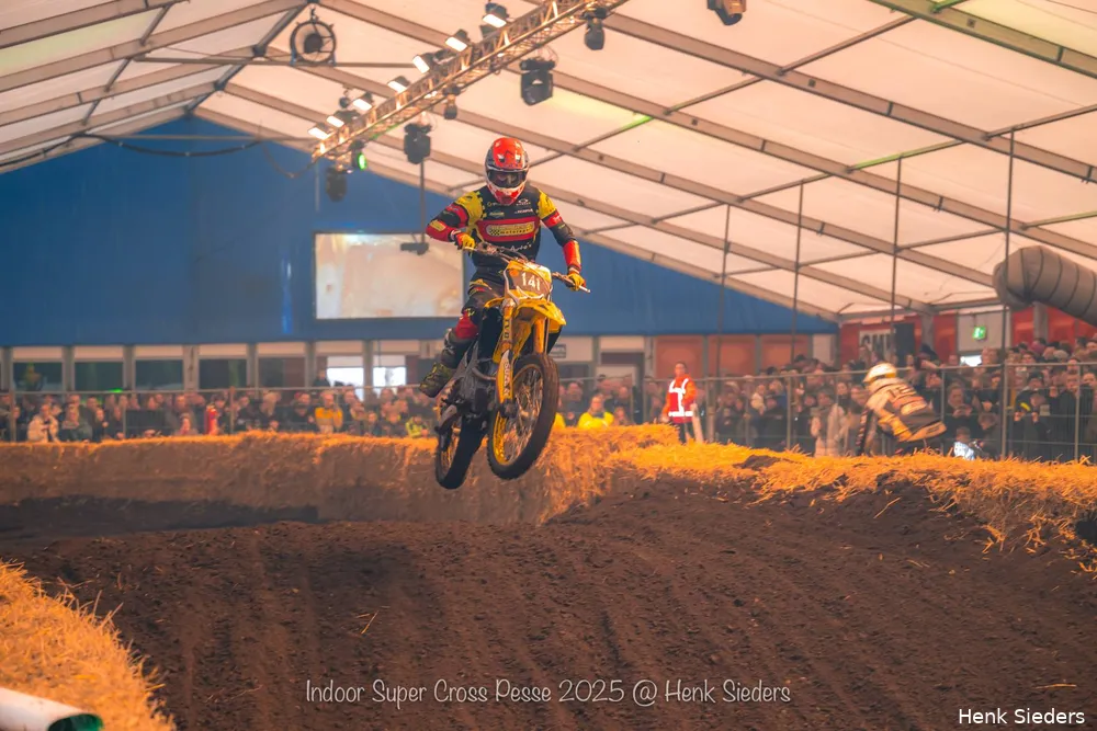 Pesse – De deelnemers kwamen na vijf jaar zonder cross weer van heinde en verre naar Pesse om mee te doen aan de Indoor Super Motorcross. Tot uit het buitenland aan toe zelfs. Het was zaterdag de achtste editie, maar met dien verstande dat er nu vooral in een tent werd gestreden in plaats van in de manege. Het werd een vlekkeloos verlopen evenement.